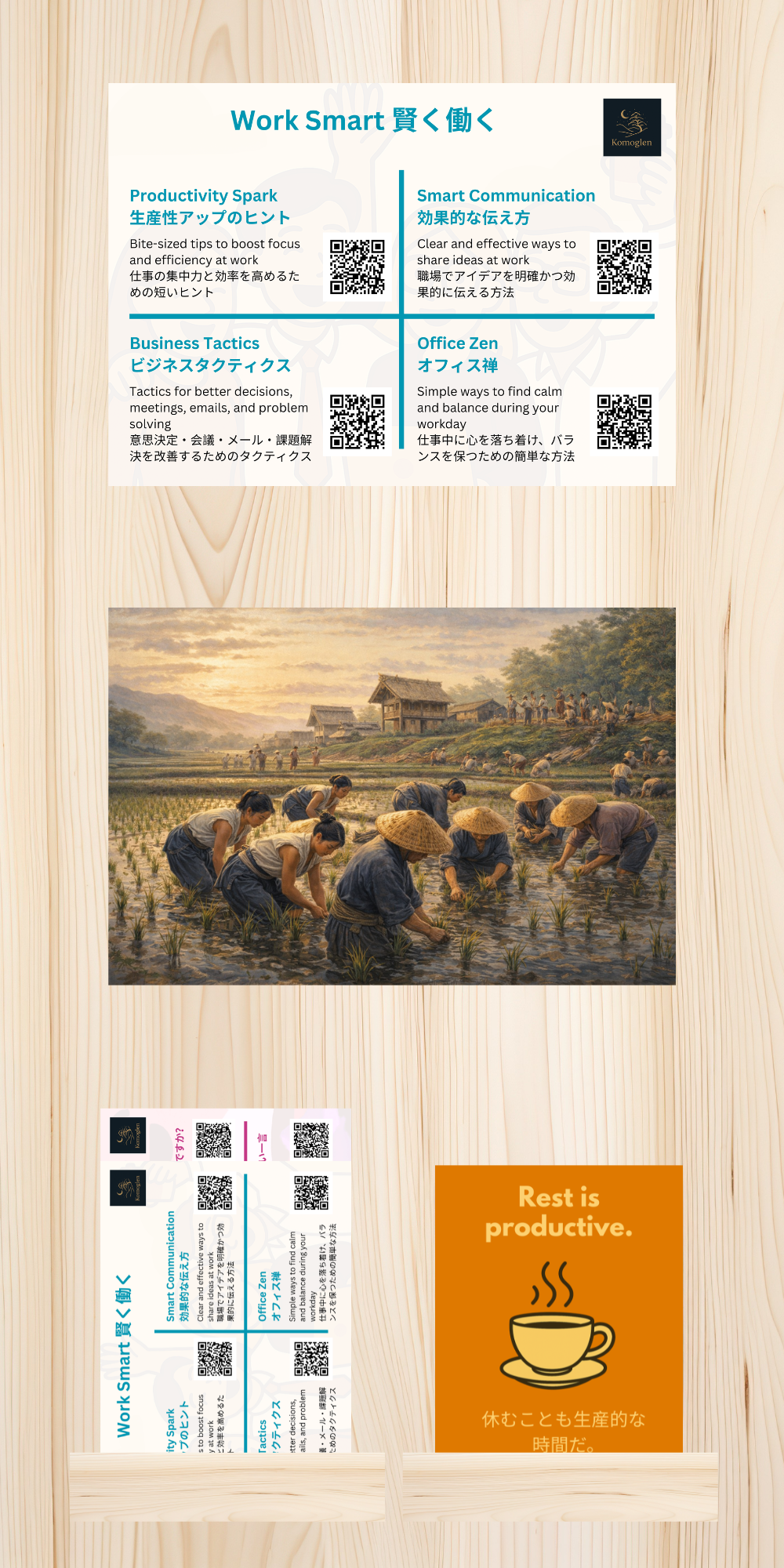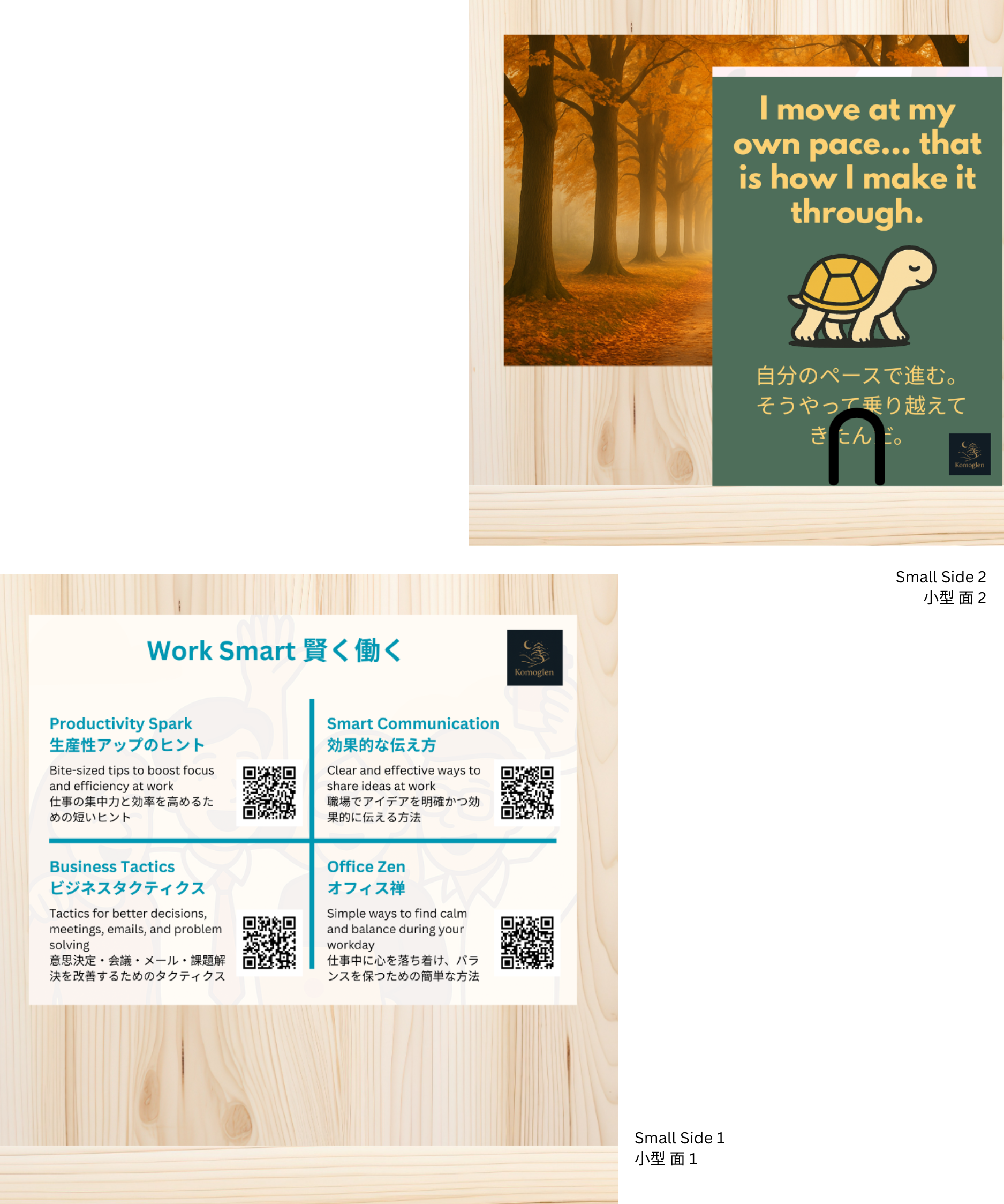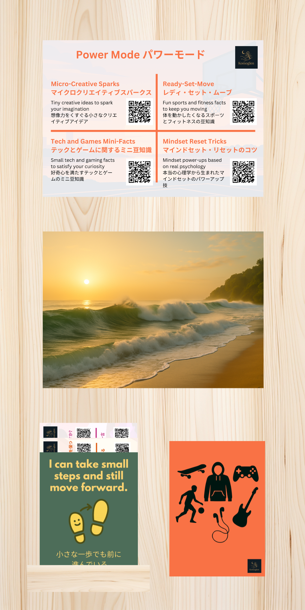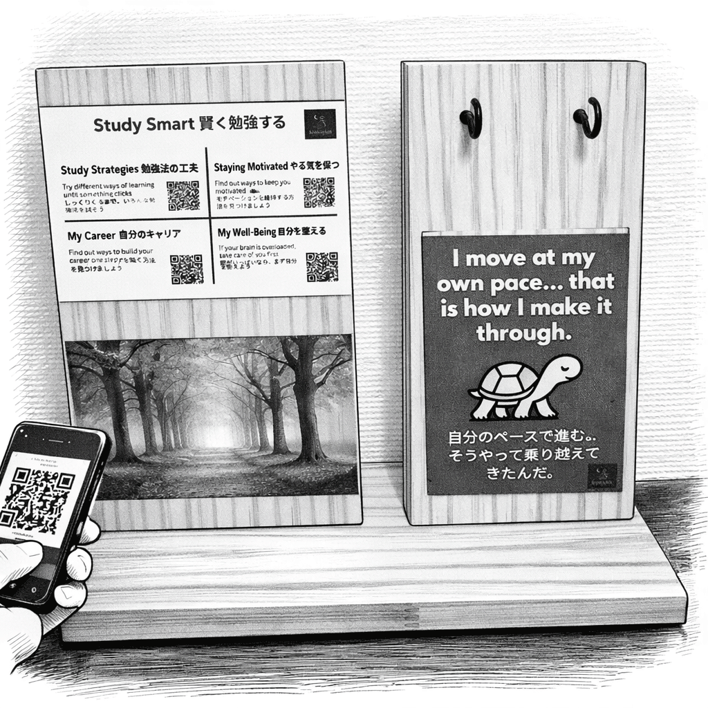 Educational wall art that builds curiosity. Six clear sections per theme, plus a QR code for Japanese translations, extra learning, and fun facts.